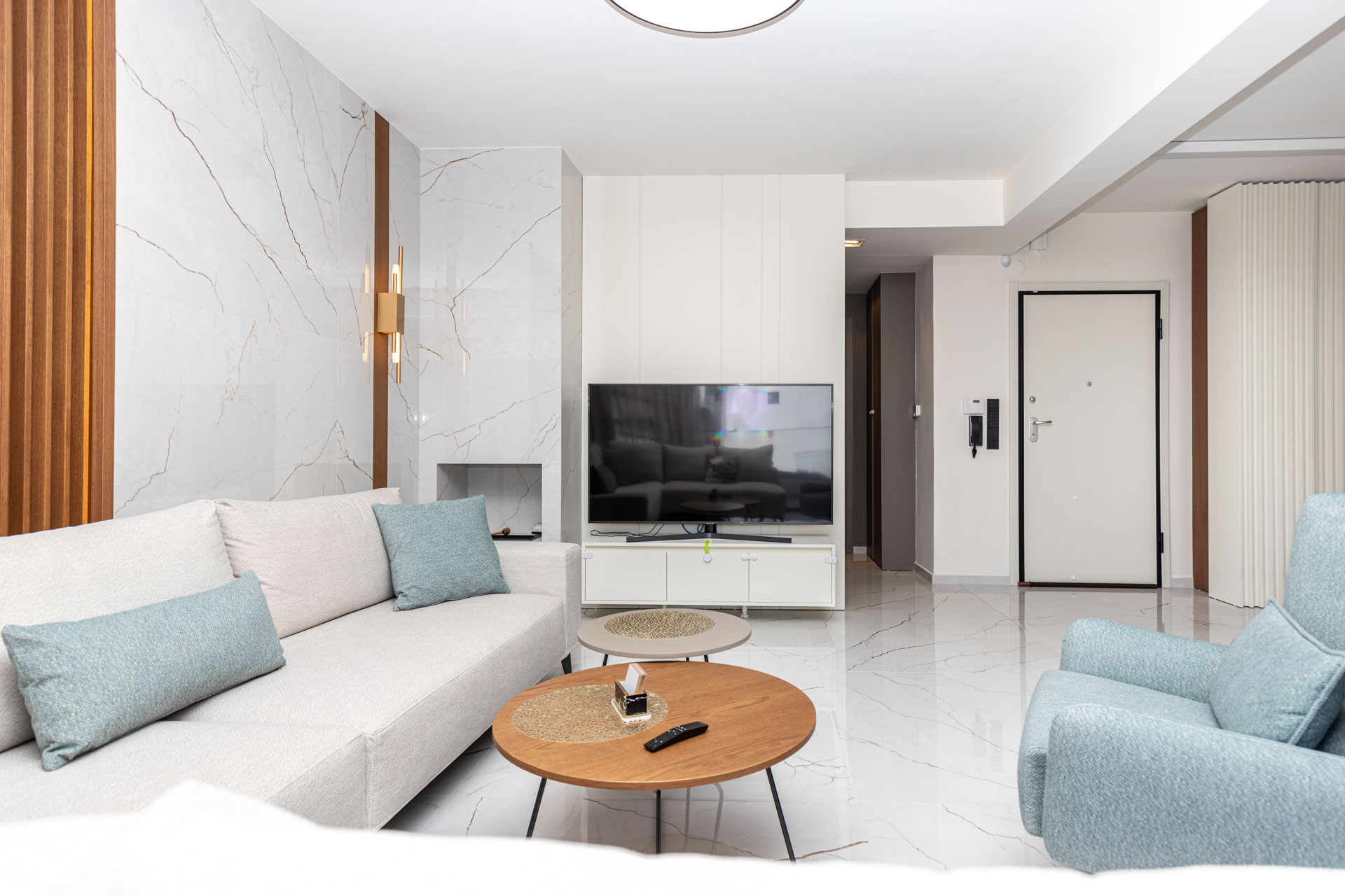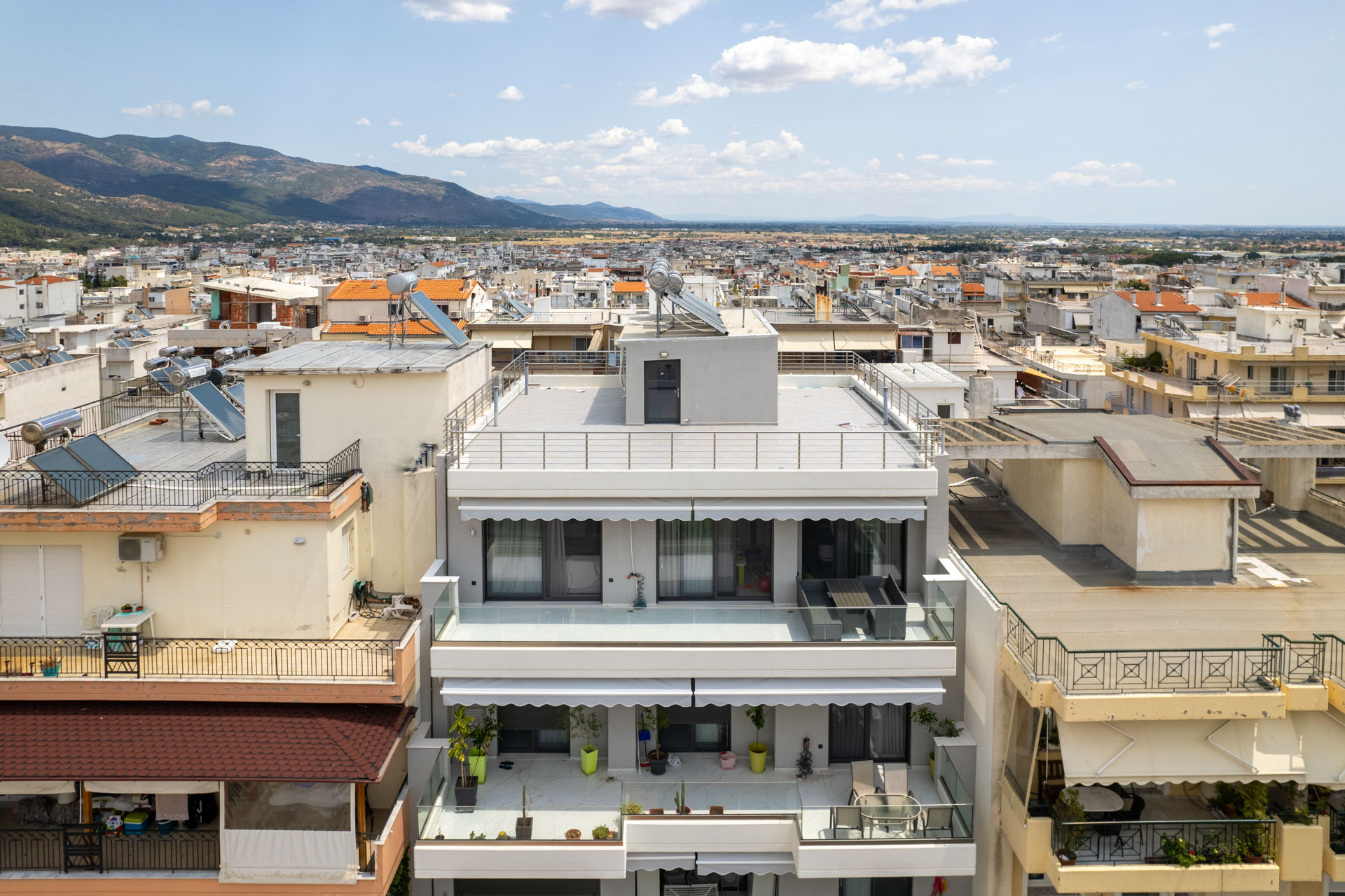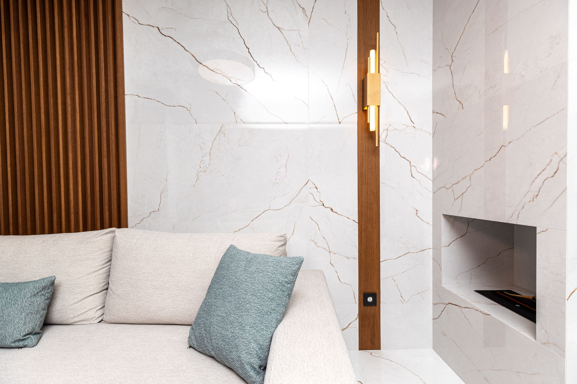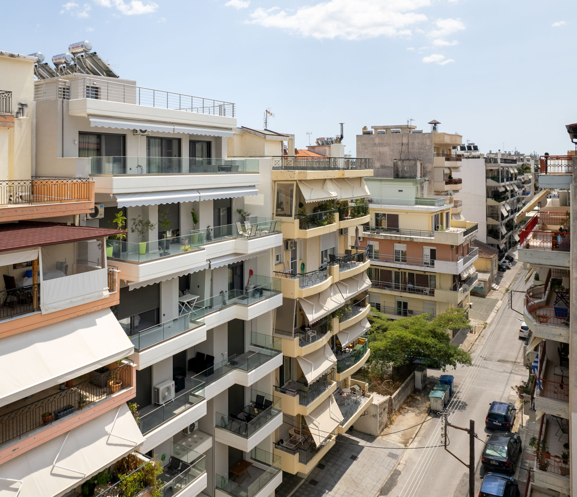 The six-story building consists of 7 contemporary apartments and a 5th-6th floor maisonette with an area of 205 m². The apartment sizes range from 65 square meters to 129 square meters, carefully considering every detail and maximizing the use of every square meter. The apartments are flooded with natural light, creating a welcoming and calm atmosphere, and are thoughtfully designed to provide maximum comfort to their owners.