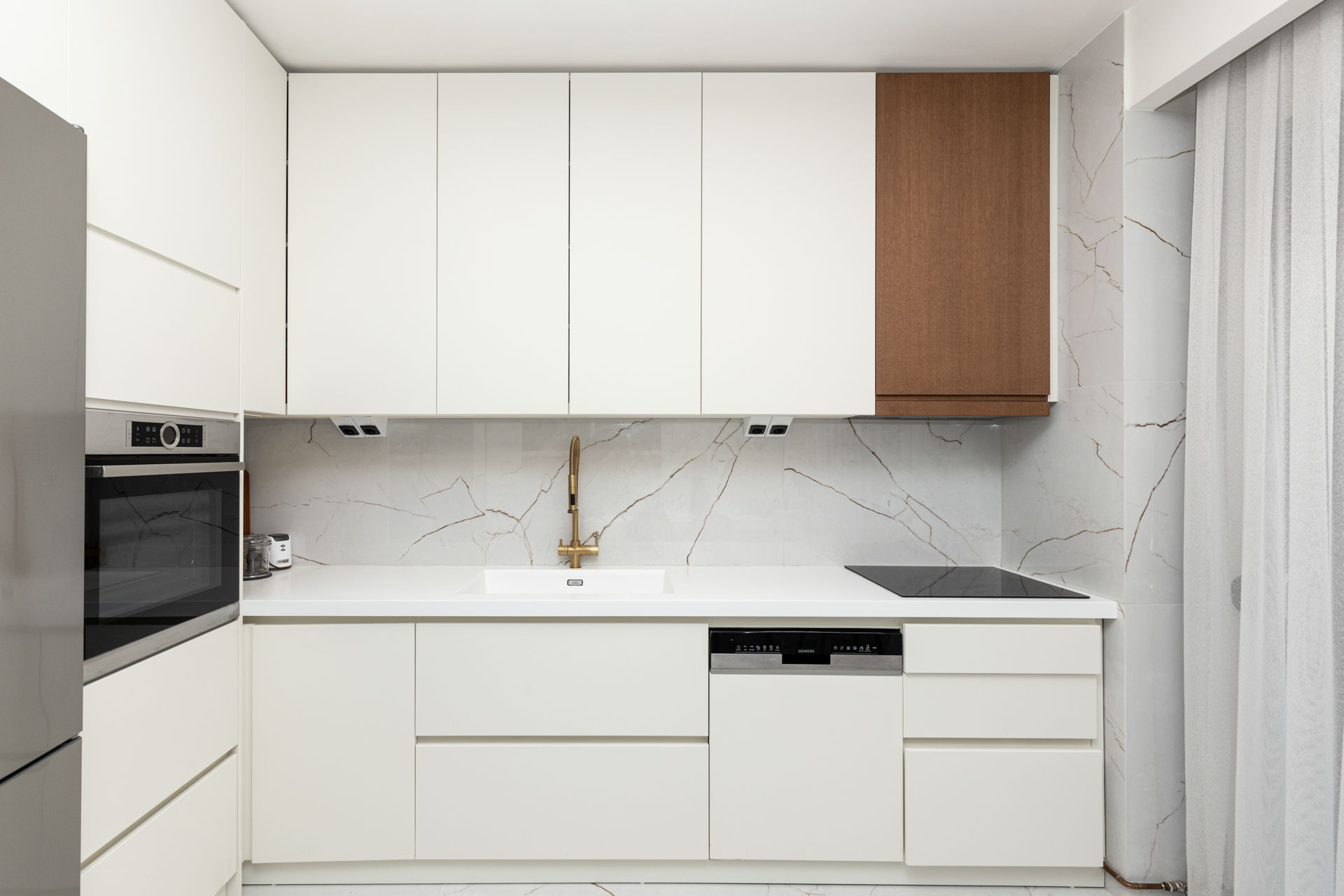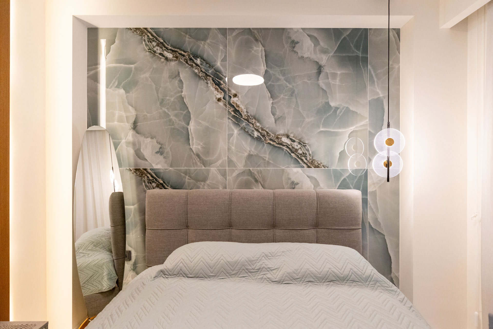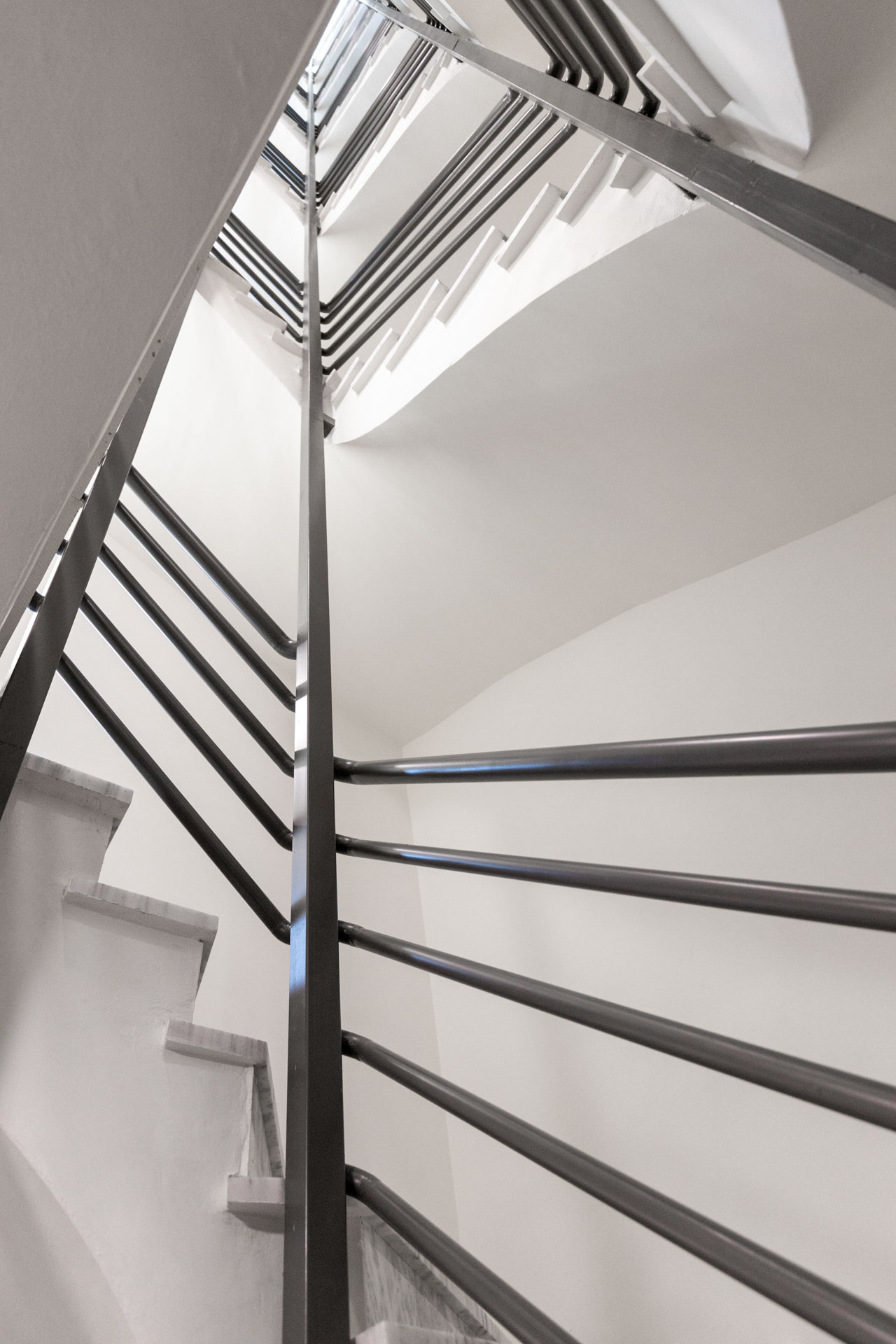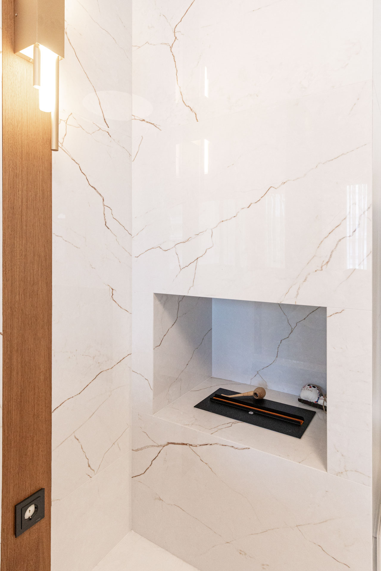 The six-story building consists of 7 contemporary apartments and a 5th-6th floor maisonette with an area of 205 m². The apartment sizes range from 65 square meters to 129 square meters, carefully considering every detail and maximizing the use of every square meter. The apartments are flooded with natural light, creating a welcoming and calm atmosphere, and are thoughtfully designed to provide maximum comfort to their owners.