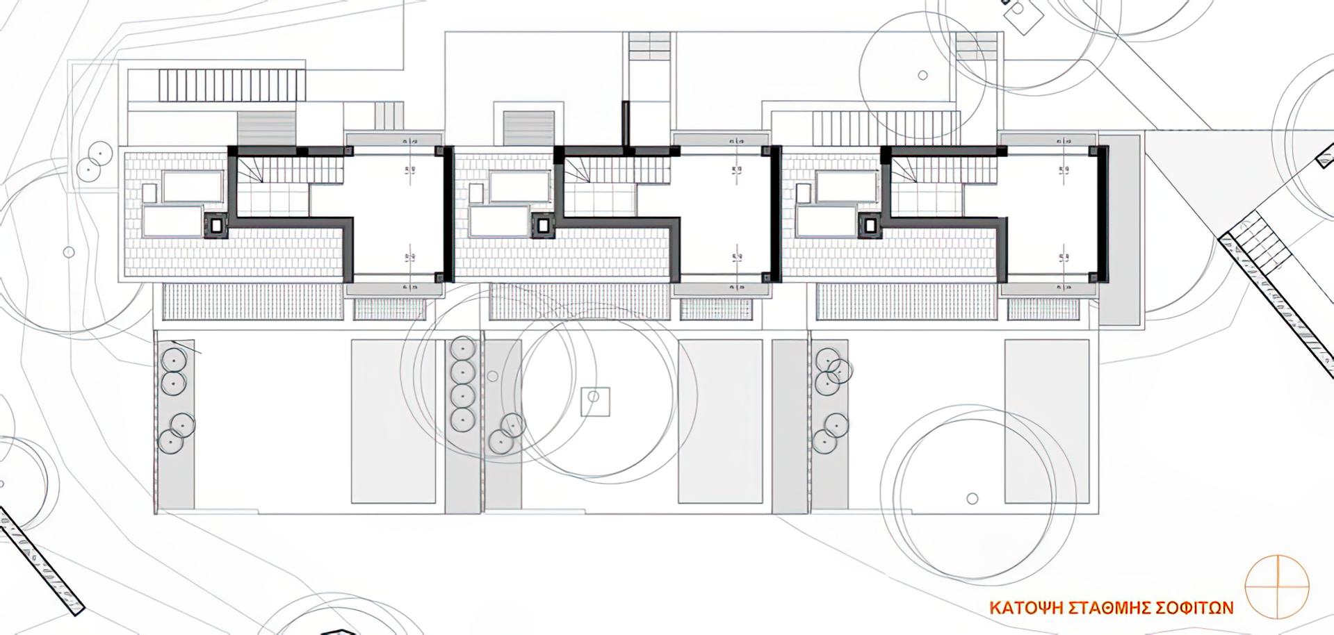 By reading the land with all its landscape parameters, the placement of the linear volume consisting of three identical units was chosen, almost at the top of the hill-plot, with the aim of exploiting all the visual perspectives, while simultaneously recreating a new ridge.