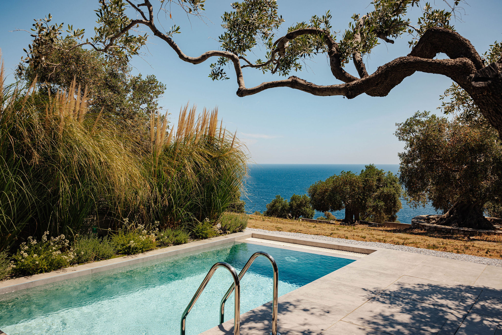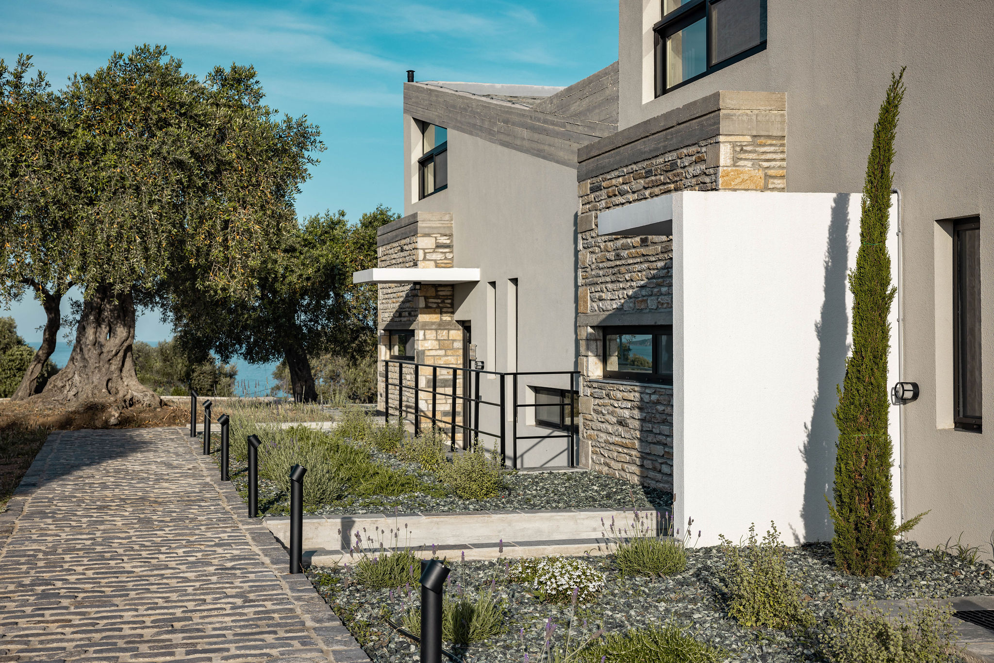 “The orientation, the climate, the views towards the sea, the rocky, barren land with the olive trees, as well as the boundaries of the plot, the scale, the character of the area, and the internal functional relationships of the building were the parameters of the compositional process.”